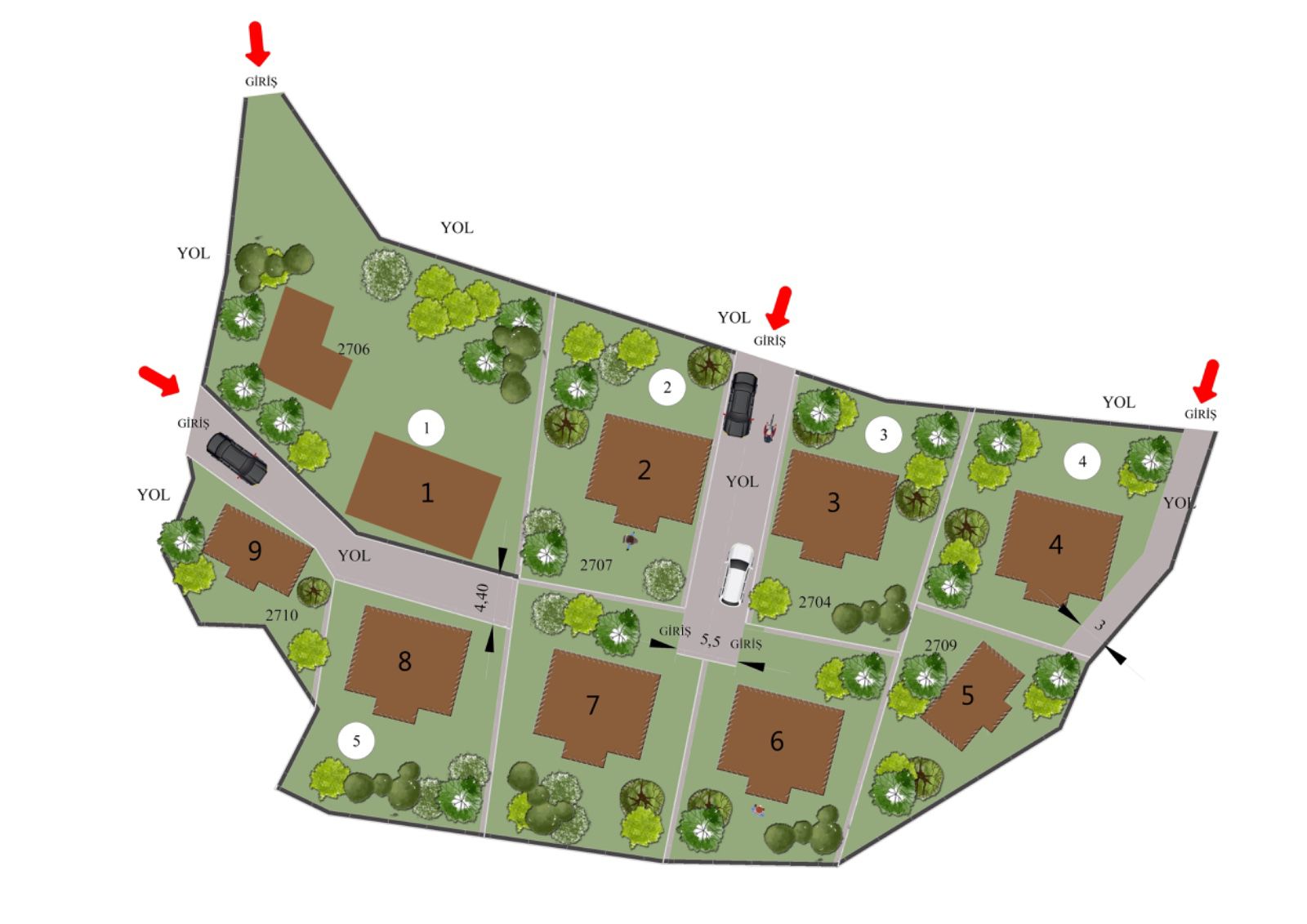 Lotus Premium Mersin’in tüm yerleşim planını keşfedin. Villaların konumları, giriş yolları ve özel otopark alanlarıyla proje, hem kullanım kolaylığı hem de estetik bir düzen sunuyor.